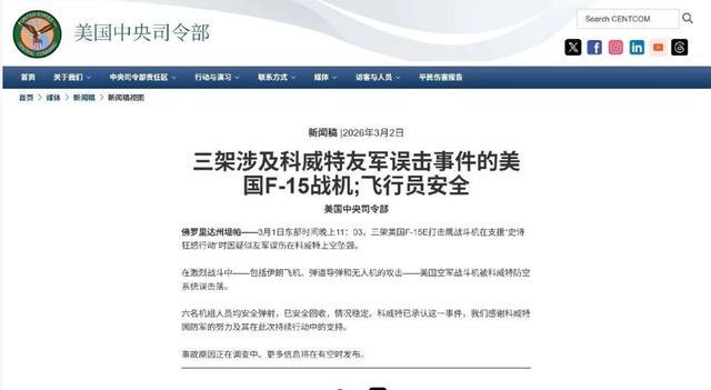 更重要的是,伊朗战斗机主动出击还会增加美国与盟友直接的误击风险,就比如根据美国中央司令部公布的消息,在3月1日科威特上空的战斗中,为了拦截包括伊朗战斗机、导弹和无人机的攻击,科威特防空部队误将3架美军的F-15E战斗机击落。这就是典型的高压环境下一线指挥官决策失误导致的误击事件,与许多人想象的不同,战场上机型识别是一件非常困难的事,在对手会用尽各种欺骗手段将自己伪装成友机的情况下,并不是一套简单的敌我识别装置就能完全杜绝战场上的误击,尤其是多国联军协同作战的情况下,误击概率就会变得更高。